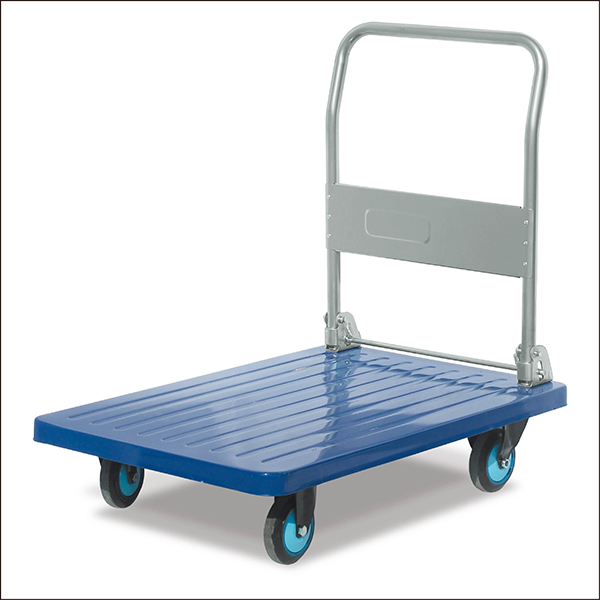 折叠式全静铁板手推车是物流周转设备工具,由酸洗钢板主体车板、粉末喷涂扶手(可折倒、固定)、行走轻便及超安静脚轮(尼龙支架、铁板支架)等组成。